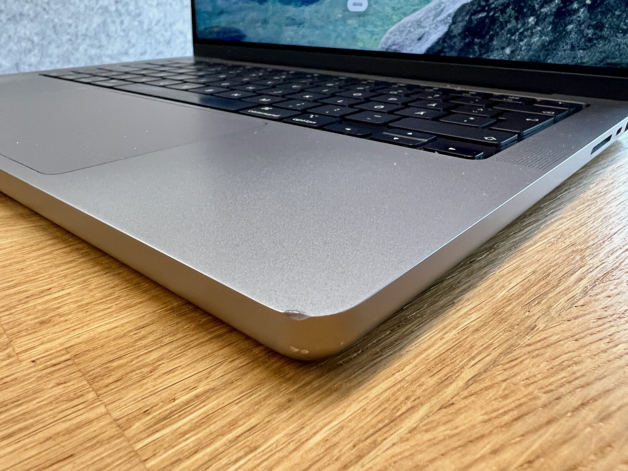 14 tuuman ja 16 tuuman MacBook Pron näytöissä on pyöristetyt yläkulmat. Jos näytöt mitataan suorakaiteina, niiden lävistäjät ovat 14,2 tuumaa ja 16,2 tuumaa (näyttöalueen koko on pienempi).